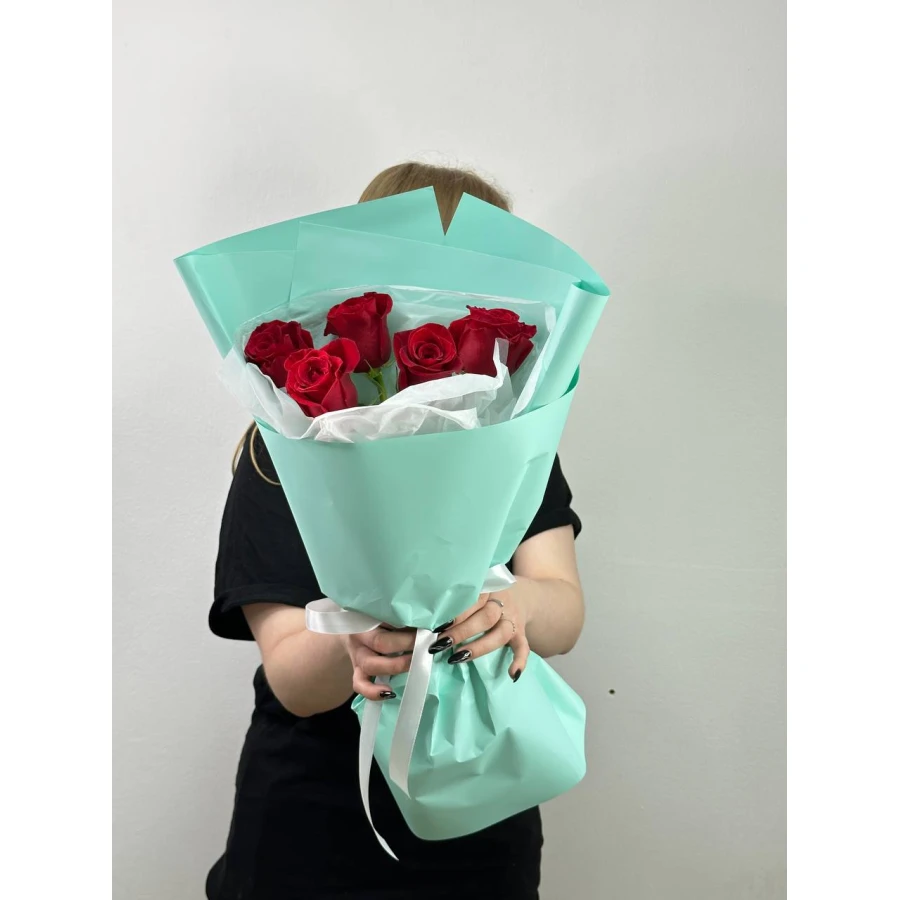 Прекрасный букет из 5 красных роз можно купить в Алматы и Республике Казахстан за 6000 тенге с быстрой бесплатной доставкой в магазине букетов «Ultra Flowers»: